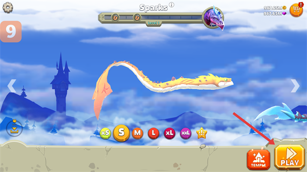 1、進入游戲,選擇龍的種類后點擊右下角【PLAY】按鍵,開啟奇幻的空中冒險之旅呢。