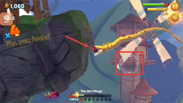 2、在飛行過程中,看到像紫色蟲子這樣的生物,就操控龍去吞噬,積累積分哦。