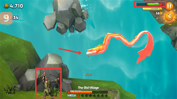 3、遇到獵人射箭攻擊時,要么迅速吞噬他們,要么趕緊遠離射擊范圍,這樣才能繼續(xù)冒險呀。