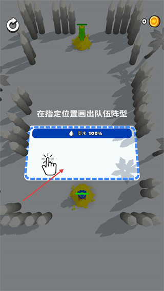 2、根據(jù)提示在指定區(qū)域內(nèi)繪制陣型,界面顯示【墨水-100%】,需合理規(guī)劃繪制范圍以確保陣型完整。