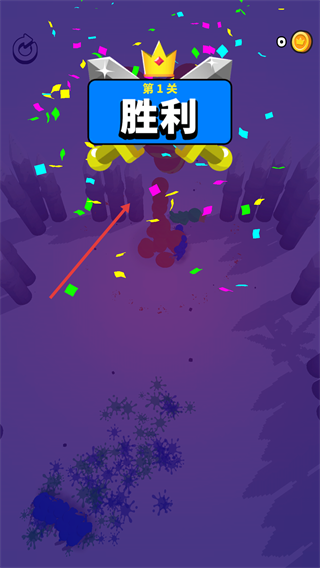 4、完成關(guān)卡后會(huì)顯示【第1關(guān)-勝利】提示,此時(shí)可獲得通關(guān)獎(jiǎng)勵(lì),繼續(xù)挑戰(zhàn)后續(xù)關(guān)卡提升游戲進(jìn)度。