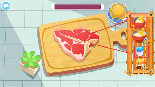 2、選取【牛排】原料,搭配對(duì)應(yīng)調(diào)料(如蛋液、鹽等),完成食材的預(yù)處理,為后續(xù)烹飪步驟奠定基礎(chǔ)。
