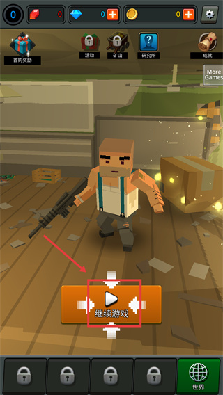 1、進(jìn)入游戲界面后,點(diǎn)擊【繼續(xù)游戲】按鈕即可開(kāi)啟游玩,界面中的【背包】【活動(dòng)】等功能可后續(xù)解鎖使用。