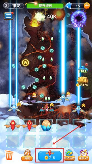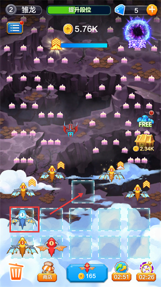 3、合成出【3級-龍】后將其放置到場景空位,可提升探索戰(zhàn)力,更快獲取金幣與鉆石等資源,加速段位提升。