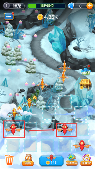2、將相同等級的【小龍】拖拽合并,可合成更高等級龍類,同時獲取更多金幣收益,推進資源積累效率。