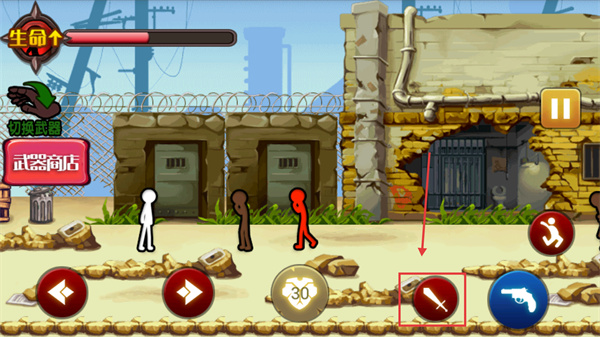 3、當(dāng)出現(xiàn)敵方單位時(shí),優(yōu)先使用【刀劍】類(lèi)近戰(zhàn)武器快速擊潰,同時(shí)留意左側(cè)【武器商店】入口,可補(bǔ)充裝備資源。