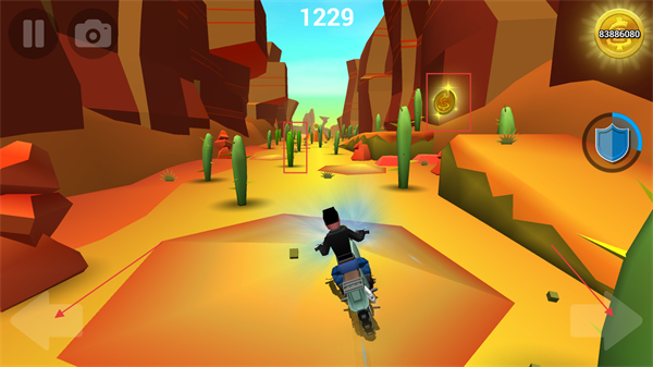 3、可借助專屬盾牌或武器主動(dòng)摧毀部分障礙物,打破單純躲避的玩法局限,為騎行過(guò)程增添策略性與進(jìn)攻樂(lè)趣。