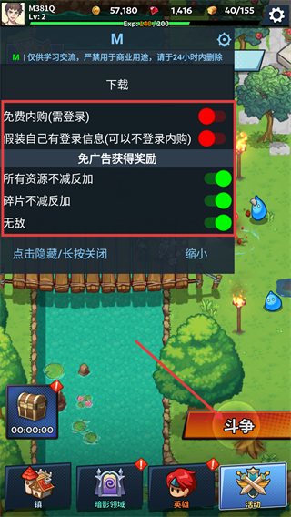 1、進入界面后,可使用【免費內購】,開啟【免廣告獲得獎勵】等功能助力開局。