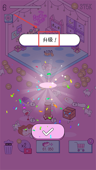 2、當(dāng)貓咪與【逗貓道具】互動(dòng)時(shí),及時(shí)關(guān)注場(chǎng)景內(nèi)道具,同時(shí)可放置更多道具擴(kuò)大收益范圍。