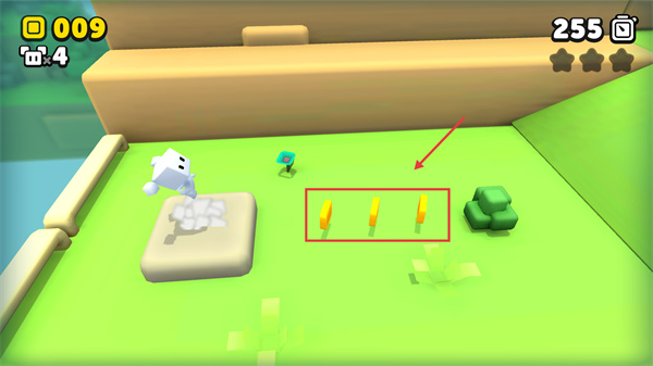 2、關(guān)卡中遇到紅色框選的黃色金幣時(shí),需控制方塊角色拾取,jiler。