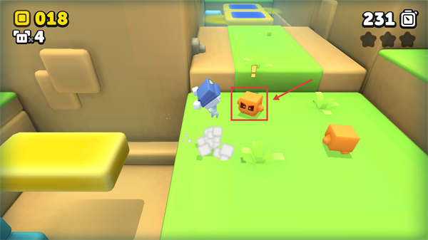3、遭遇橙色骷髏狀敵人時(shí),應(yīng)快速消滅它,同時(shí)收集場(chǎng)景內(nèi)的道具提升通關(guān)效率。