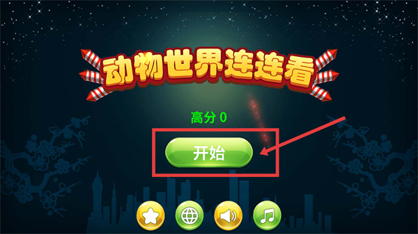 1、進(jìn)入【動(dòng)物世界連連看】界面后,點(diǎn)擊界面中的【開(kāi)始】按鈕,進(jìn)入第一關(guān),即可開(kāi)啟該連連看游戲的闖關(guān)進(jìn)程。