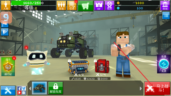3、可通過收集方塊武器和各類配件,發(fā)揮創(chuàng)意自由組裝個(gè)性化戰(zhàn)車,滿足玩家的專屬定制與改裝需求。