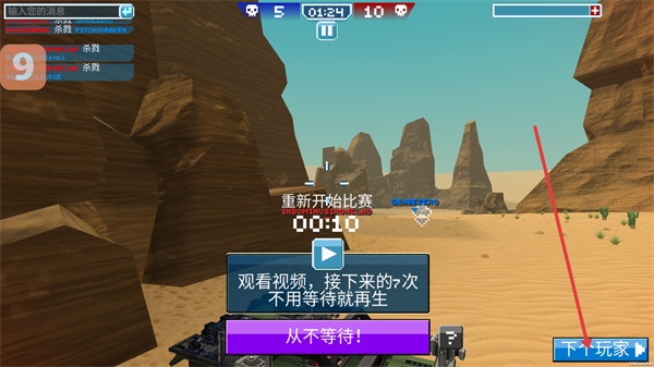 4、被擊敗后,選擇【從不等待!】選項(xiàng)跳過重生倒計(jì)時(shí),快速回歸戰(zhàn)斗,繼續(xù)積累擊殺數(shù)爭(zhēng)奪優(yōu)勢(shì)。