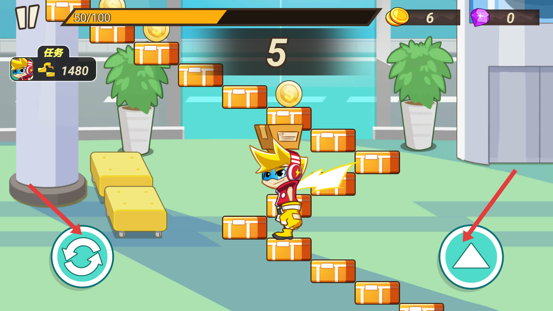 3、游戲過(guò)程中,繼續(xù)通過(guò)【攀爬】按鈕操控角色移動(dòng),收集更多金幣,此時(shí)【任務(wù)】進(jìn)度會(huì)隨操作逐步變化,同時(shí)收集場(chǎng)景中的金幣。