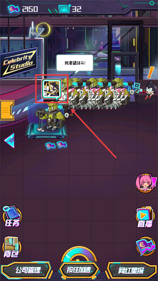 4、在場景中點(diǎn)擊角色卡片,觸發(fā)互動(dòng)事件(如“我渴望戰(zhàn)斗”),完成對應(yīng)事件可推進(jìn)工作室的人氣增長。