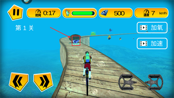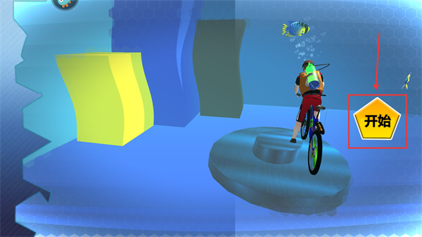 1、點(diǎn)擊右側(cè)【開(kāi)始】按鈕進(jìn)入水下騎行關(guān)卡,提前觀察場(chǎng)景布局以規(guī)劃行進(jìn)路線。