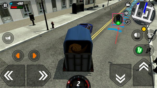 3、行駛中留意界面上方數(shù)值,若出現(xiàn)負數(shù)需調(diào)整操作,綠燈時按指引路線行駛可避免扣分。