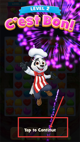 4、通關(guān)【LEVEL-2】后,界面顯示【C’est-Bon!】,點(diǎn)擊【Tap-to-Continue】按鈕,進(jìn)入后續(xù)游戲環(huán)節(jié)。