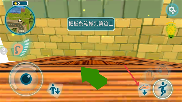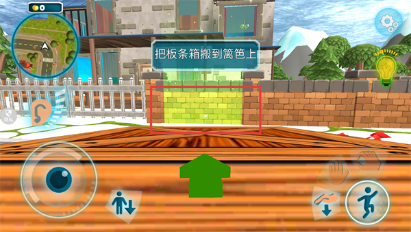 4、到籬笆附近后,點擊右下方的按鈕,將箱子放下即可完成任務(wù)。