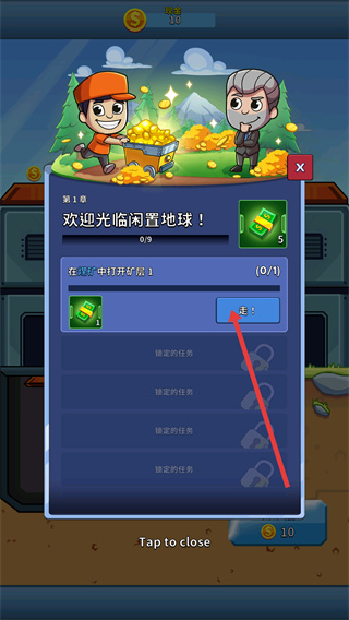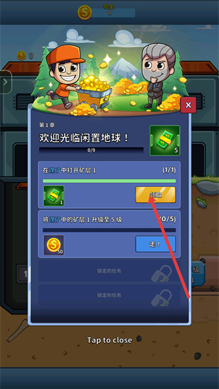 4、領(lǐng)取【在煤礦中打開礦層1】的任務(wù)獎勵,接著領(lǐng)取新任務(wù)推進(jìn)挖礦進(jìn)度。