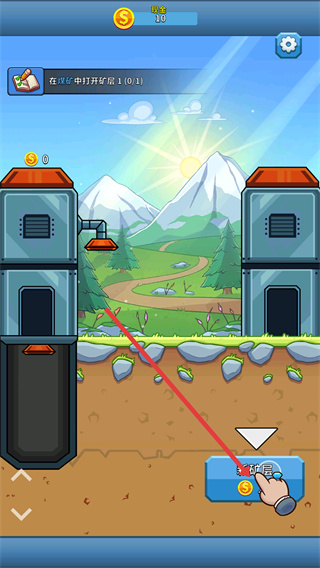 2、點擊【新礦層】按鈕,消耗少量現(xiàn)金解鎖新的挖礦區(qū)域,為后續(xù)礦產(chǎn)采集和利潤積累打下基礎(chǔ)。