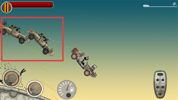 2、按住右側【油門】按鈕控制戰(zhàn)車加速,利用滿配戰(zhàn)車的強度,更高效地撞擊敵方目標推進關卡。