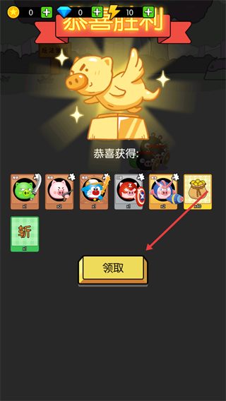 4、戰(zhàn)斗勝利后進(jìn)入結(jié)算界面,點(diǎn)擊【領(lǐng)取】按鈕,獲取獎(jiǎng)勵(lì)。