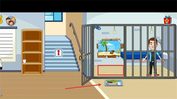 3、將牢門打開后,我們將餐盤放進(jìn)去,這樣犯人就可以拿到了。