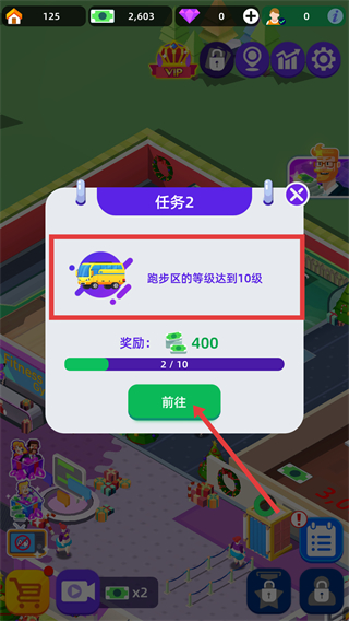 2、在【任務(wù)2】界面中點擊綠色的【前往】按鈕,直接跳轉(zhuǎn)至跑步區(qū)的升級操作頁面,推進(jìn)任務(wù)進(jìn)度。
