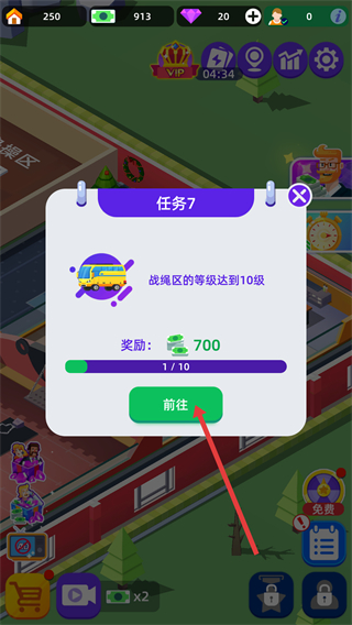 2、完成任務(wù)需將戰(zhàn)繩區(qū)等級升至10級,點擊前往按鈕快速定位升級區(qū)域。