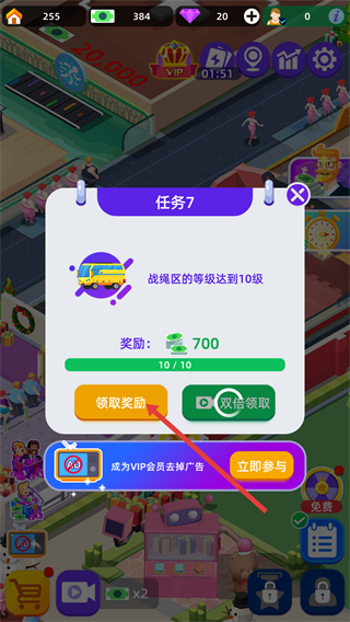 4、任務(wù)7完成后點擊領(lǐng)取獎勵按鈕,獲取700金幣獎勵繼續(xù)升級設(shè)施。