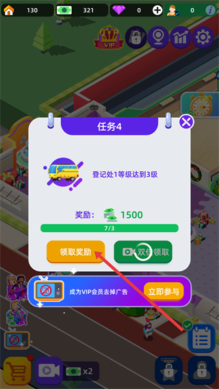 4、完成【任務(wù)4】后點(diǎn)擊【領(lǐng)取獎勵】獲取1500資金,用于后續(xù)升級設(shè)備或擴(kuò)張健身房規(guī)模。