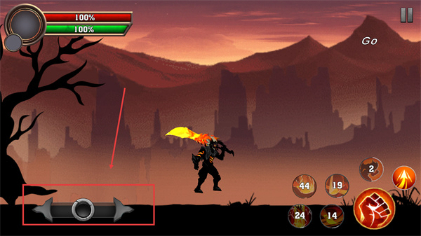 1、進(jìn)入戰(zhàn)斗后,先熟悉下左下角的移動(dòng)按鍵與地圖,并點(diǎn)擊右上角的【Go】按鈕開(kāi)始行動(dòng)。