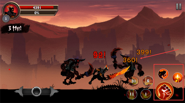 2、對(duì)戰(zhàn)時(shí),優(yōu)先攻擊紅框標(biāo)記的怪物,同時(shí)可以利用右下角技能攻擊,能快速推進(jìn)游戲進(jìn)度。