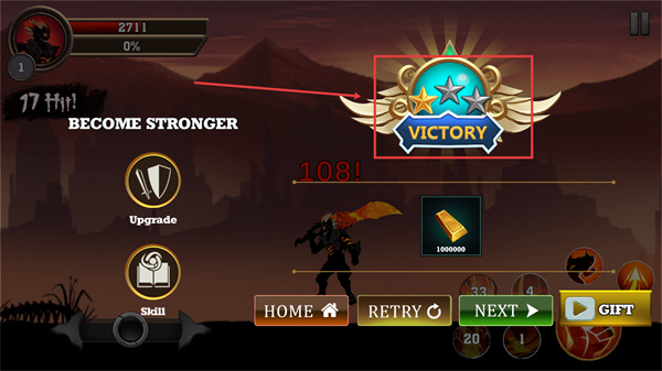 4、勝利后界面會(huì)顯示【VICTORY】徽章,此時(shí)獲得資源可強(qiáng)化角色,并點(diǎn)擊【NEXT】進(jìn)入后續(xù)關(guān)卡。