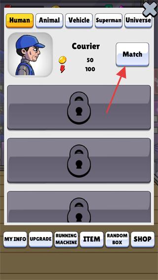 1、在角色選擇界面,選定【Courier】角色后,點(diǎn)擊【Match】按鈕匹配對(duì)手,開啟賽跑對(duì)局。