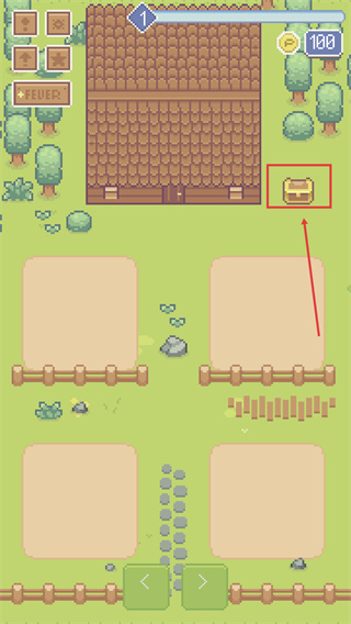 1、在【FEUER】場景中,注意房子旁標(biāo)紅的寶箱,點(diǎn)擊可獲取初始資源。