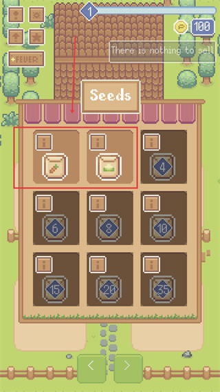 2、前往【Seeds】商店,用初始【100】金幣購買種子。