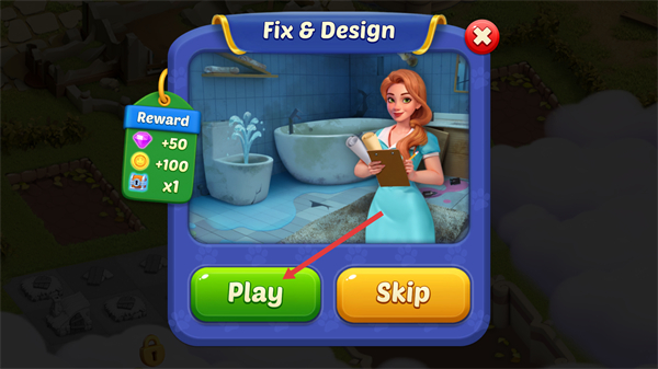1、點擊【Play】按鈕開始關卡,可獲取獎勵,開啟消除挑戰(zhàn)為角色布置家具。