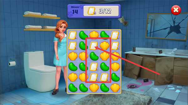 3、當前需收集12個【鏡子】,移動鏡子完成合并消除,收集對應元素并合理使用步數推進關卡進度。