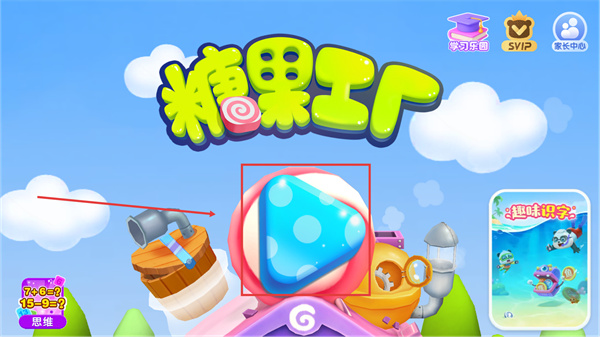 1、點(diǎn)擊界面中的彩色三角按鈕進(jìn)入【糖果工廠(chǎng)】玩法,該玩法結(jié)合了思維題元素,可開(kāi)啟糖果制作的互動(dòng)流程。