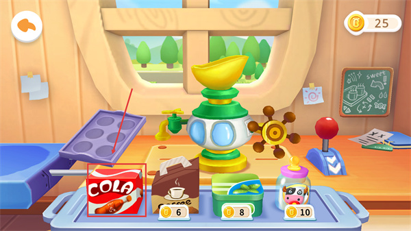 2、消耗金幣選擇【COLA】等原料,將其放入制作設(shè)備中,作為糖果制作的初始材料,推進(jìn)生產(chǎn)流程。