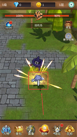 2、在【掛機島】場景中自動攻擊目標(biāo),觸發(fā)【暴擊132】類傷害效果,快速推進戰(zhàn)斗進度獲取資源。