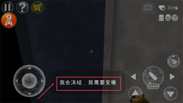 3、游戲存在低溫機制,當出現(xiàn)【我會凍結(jié)-我需要變暖】提示時,需及時尋找保暖措施避免狀態(tài)惡化。