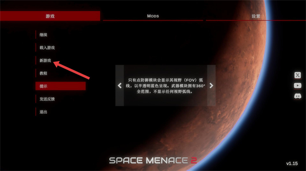1、界面顯示游戲主菜單,可選擇【新游戲】開始游玩,即可開始屬于你們的挑戰(zhàn)。