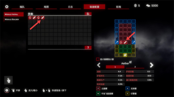 3、進入【裝備配置】界面后,左側(cè)貨艙有可用裝備,右側(cè)是艦船的插槽布局,可將貨艙里的裝備拖動到艦船對應(yīng)插槽中。