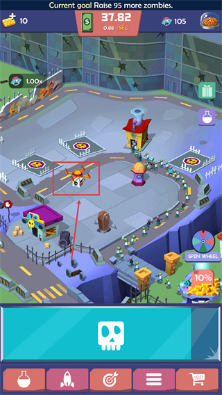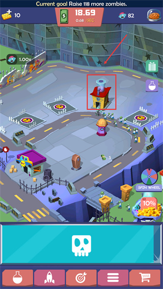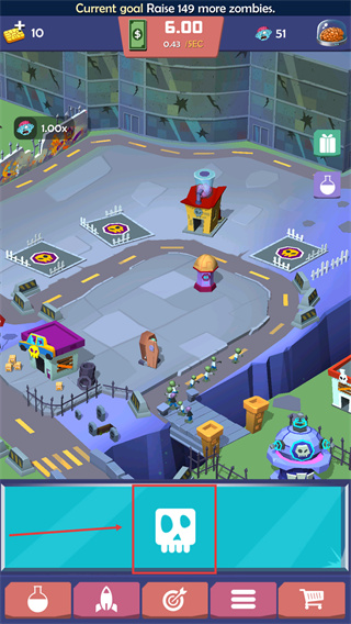 1、點擊界面中的骷髏按鈕,積累僵尸數(shù)量以提升資源獲取效率。