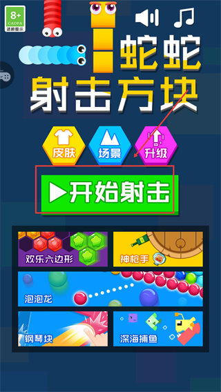 1、進入【蛇蛇射擊方塊】后,點擊【開始射擊】按鈕進入游戲。