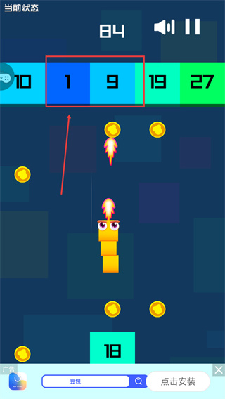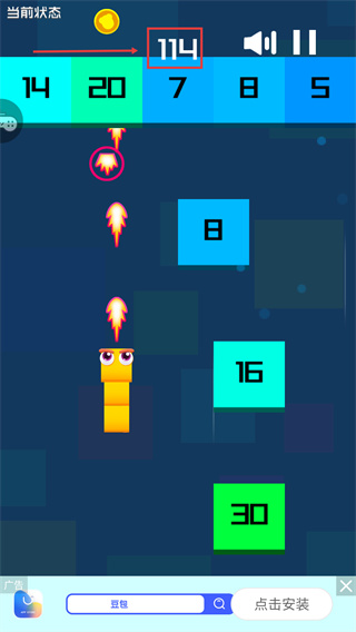 2、控制蛇形角色射擊上方數字方塊,優(yōu)先攻擊數字少的方塊。